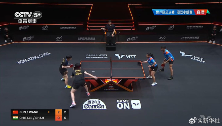 在10日进行的世界乒乓球职业大联盟(WTT)香港总决赛混双小组赛首轮中,王楚钦/孙颖莎击败印度组合玛纳什·沙/奇塔莱。